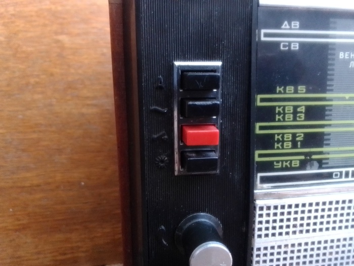 Кнопка АПЧ (верхняя) работает без изменений. Да, если кто не знает, что это - это АвтоПодстройка Частоты. Работает она так. Если поймать радиостанцию, включить АПЧ и подвигать стрелку по шкале чуток в стороны, то пойманая станция не "уходит", а продолжает (почти) так же чисто приниматься. На станции настраиваться становится попроще. Когда АПЧ выключена - настраиваться нужно более точно. Некоторые могут спросить "А зачем вообще тогда отключать АПЧ?" А затем, что когда диапазон сильно забит станциями (они близко друг к другу по шкале), то АПЧ будет мешать принимать те, передатчик у которых менее мощный или слишком далеко находится. Более мощные/близкие станции будут заглушать более слабые/дальние, которые можно будет вообще не услышать.