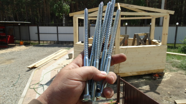 Морилка + 2 слоя лака + покраска столбика. Решил, что будет не лишним добавить укосины для подпора.