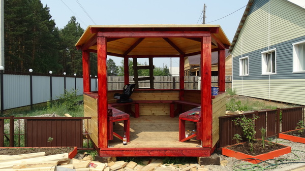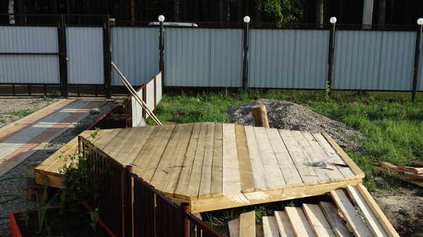 После того как был сделан вольер на двух крупных собак, было решено отложить баню и гараж, и заняться обустройством ограды. Решили делать заборчик, клумбы и беседку.