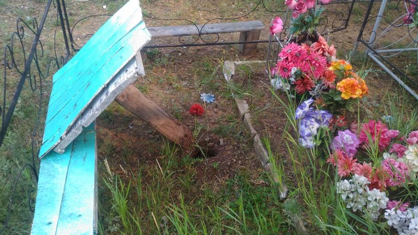 Никому не пожелаю однажды прийти к могиле близкого человека, и увидеть как кто-то там. У меня нет слов. Я не понимаю! Я Нихуя не понимаю! Как так можно то? Это место захоронений появилось еще 50 лет назад и не имеет официальный статус кладбища. Это к вопросу о заявлении в милицию, полицию. Одна надежда на то, что однозначно эти твари, явно тупые, сами прогорят и мы их найдем.