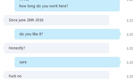 Ну и третий звоночек, приведу скриншот диалога с сотрудником, который меня тренировал и вместо которого я должен был заступить на смену (отличный серб, до сих пор с ним иногда общаюсь)