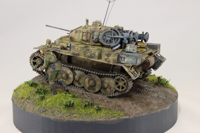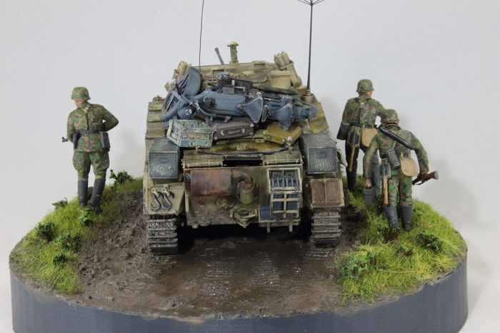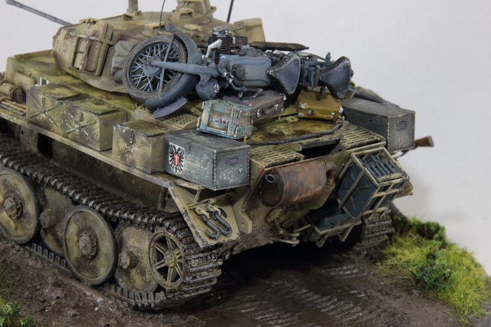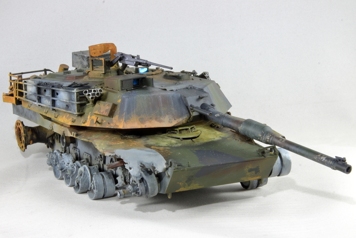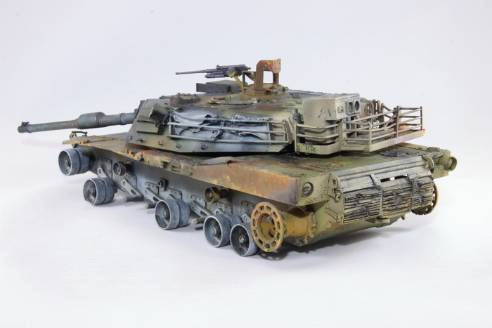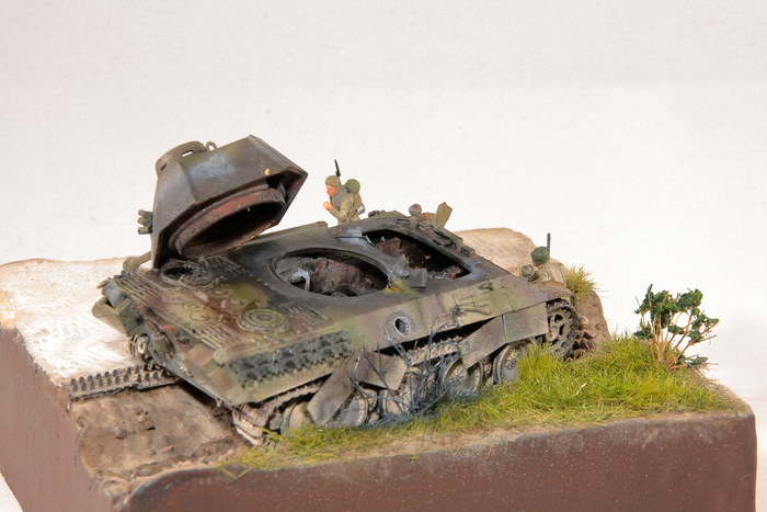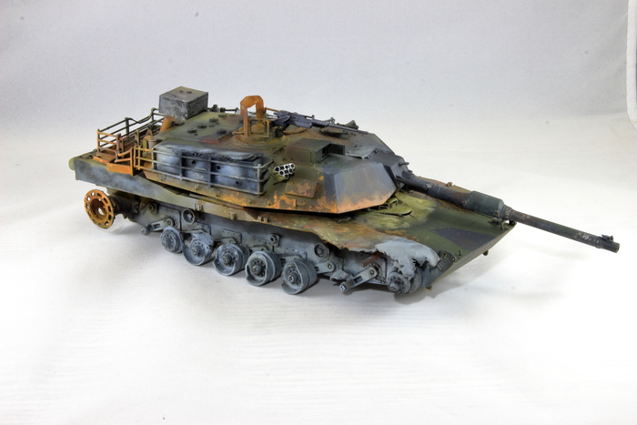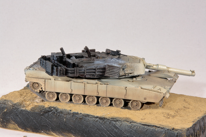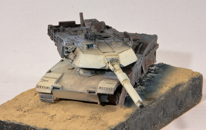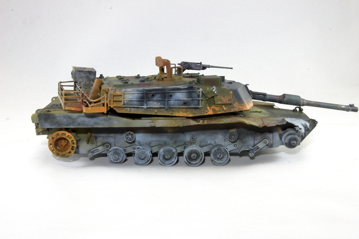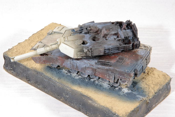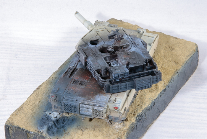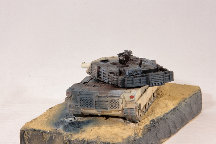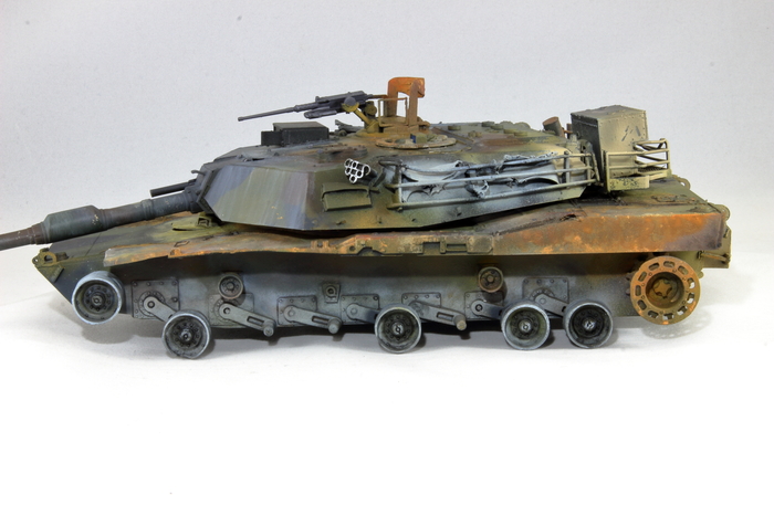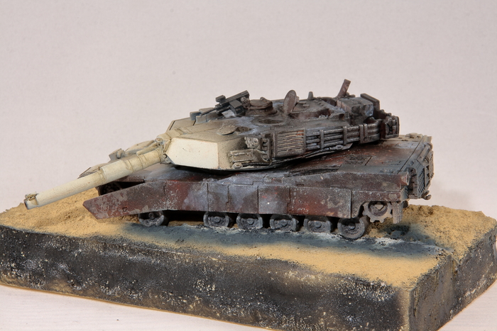 10. Уже пошли маслянные краски. Это потёки, "встреча" белого и чёрного на катках и немного dark Earth пигмента на носу танка.