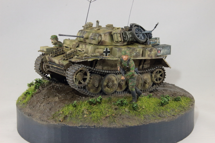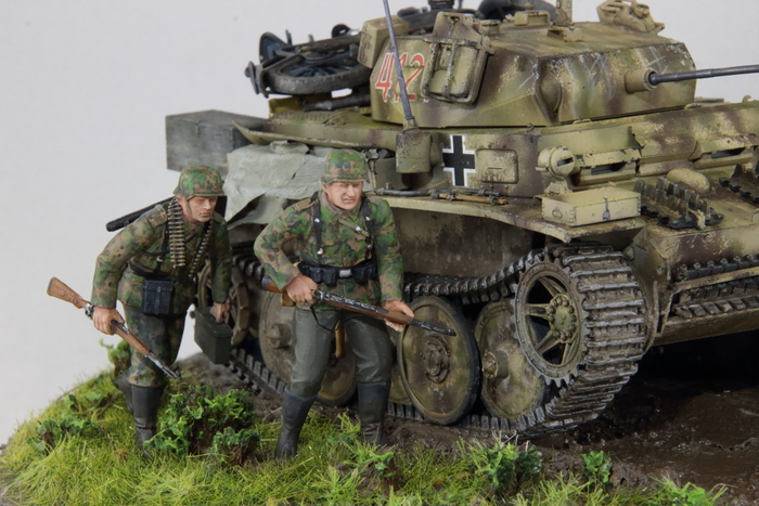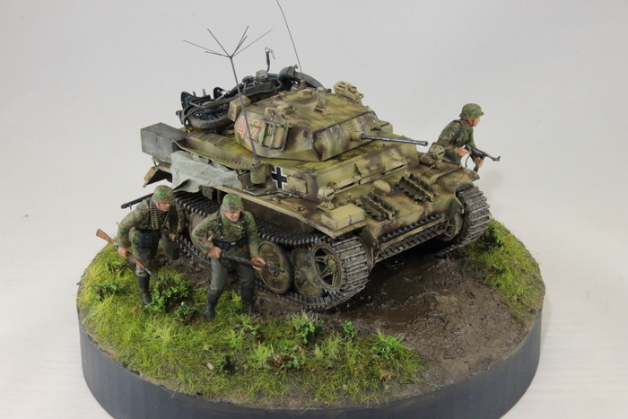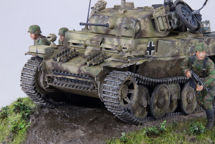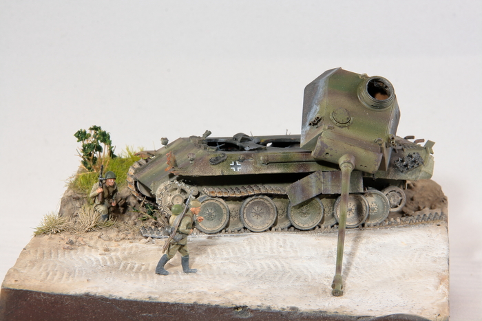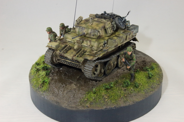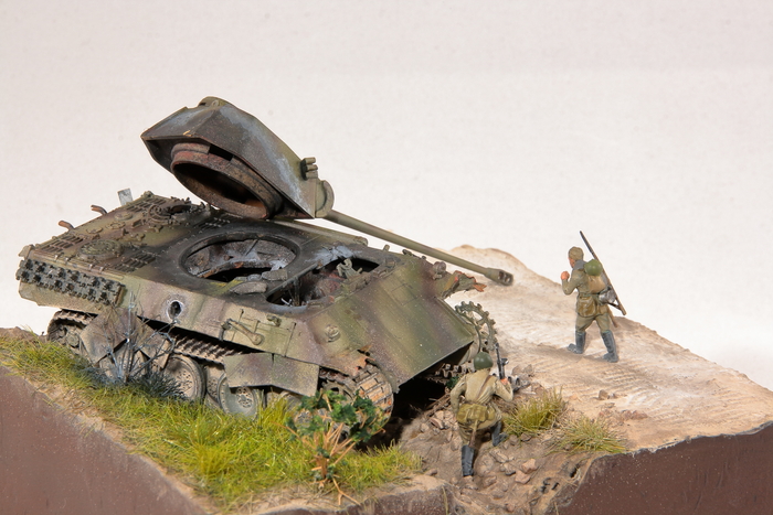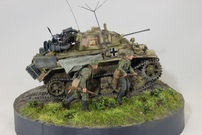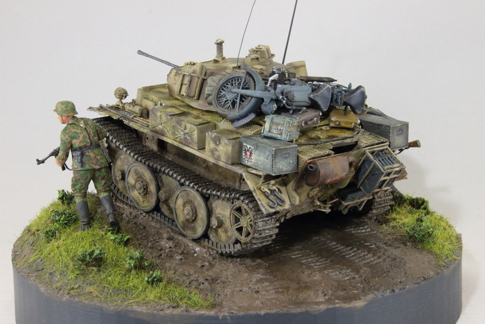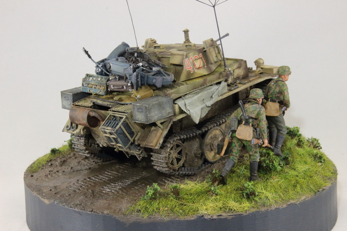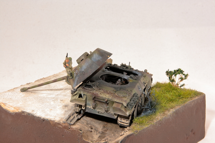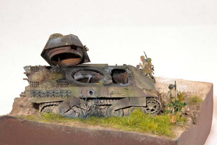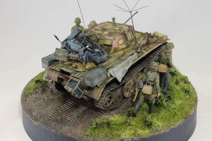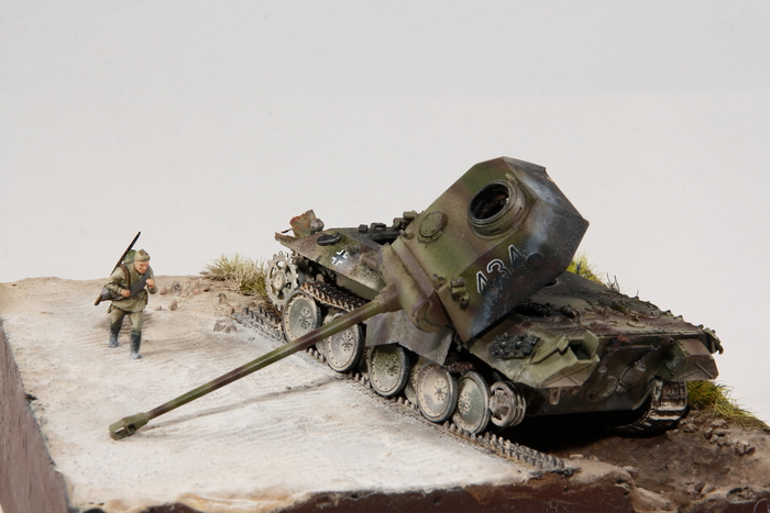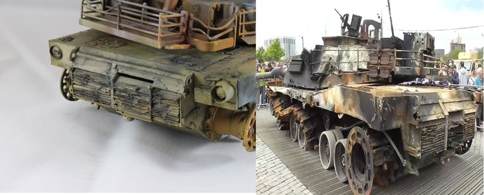 10. Уже пошли маслянные краски. Это потёки, "встреча" белого и чёрного на катках и немного dark Earth пигмента на носу танка.