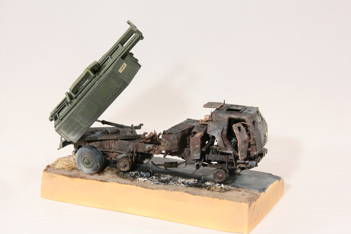 Слой красок от ICM это ржавчина стандартная, желтый, оранжевый. Сначала всё задул ржавчиной потом местами высветлял желтым и оранжевым, послойно. То что видно на ведущем катке, это как раз база.