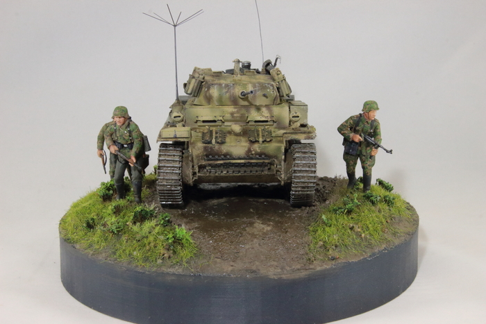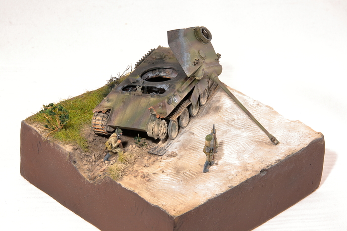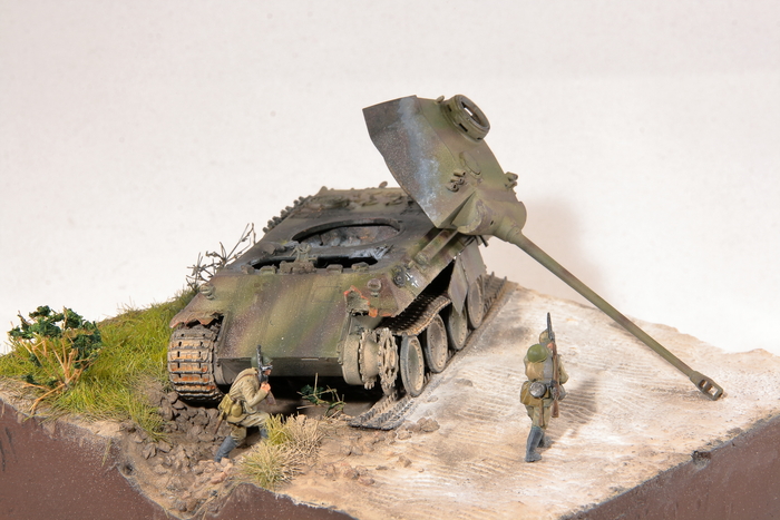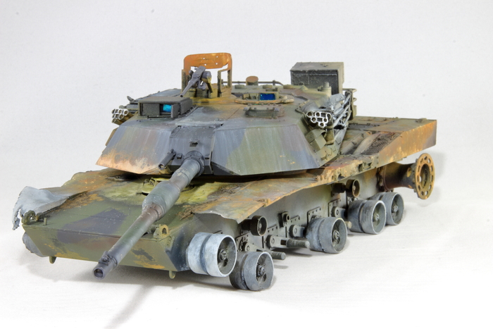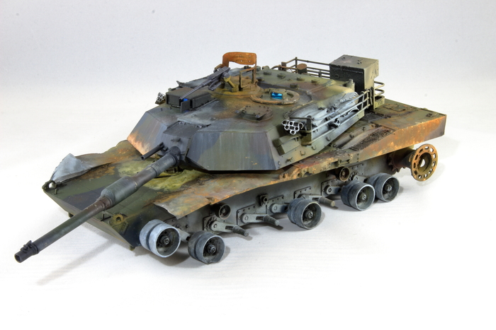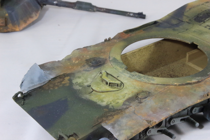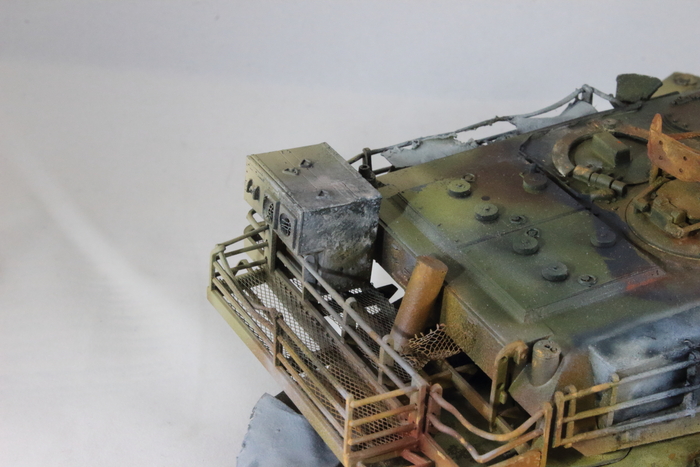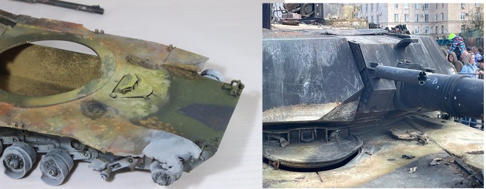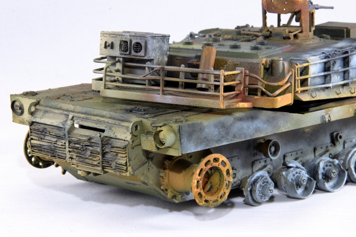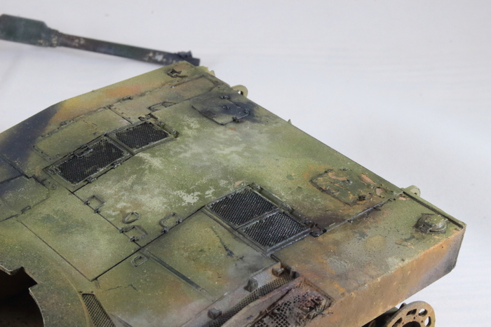 5. Снова слой чиппинга и уже камуфляж на носу немного сзади и на башне, там где не выгорел. Это Nato Green, Nato Black и Russian Brown.