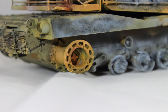 6. До матового лака на надгусенничные полки густо накинул пигментов замешанных на изопропиловом спирте(для того чтобы немного въелись в краску) Это три вида пигментов MIG свежая ржавчина, старая ражвчина, дорожная пыль. После немного прошёл по этим местам сильно разбавленным Тамиевским Smoke + Пару капель матирующей присадки, для того чтобы сбить пёстроту.