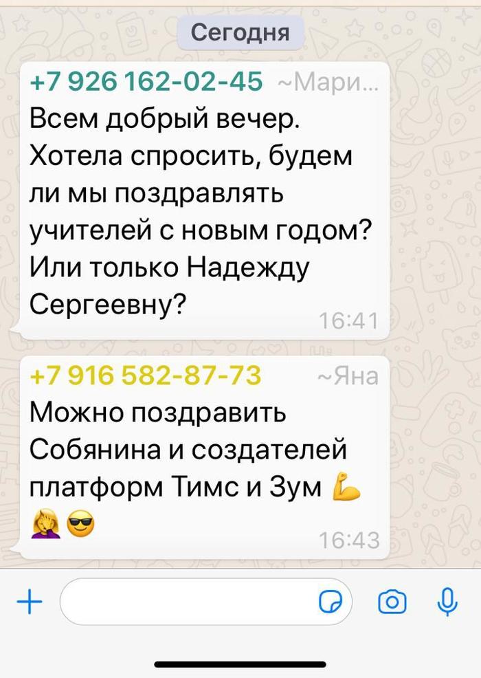 Tracktor032 Школьный чат 5 лет назад Показать полностью 1 Родительский чат Коронавирус Microsoft Teams Сергей Собянин ZOOM Cloud Meetings Ещё 0