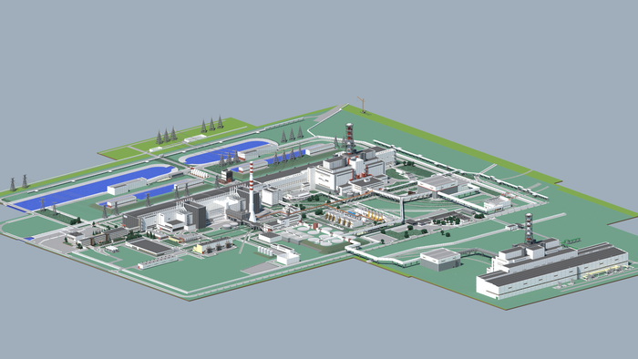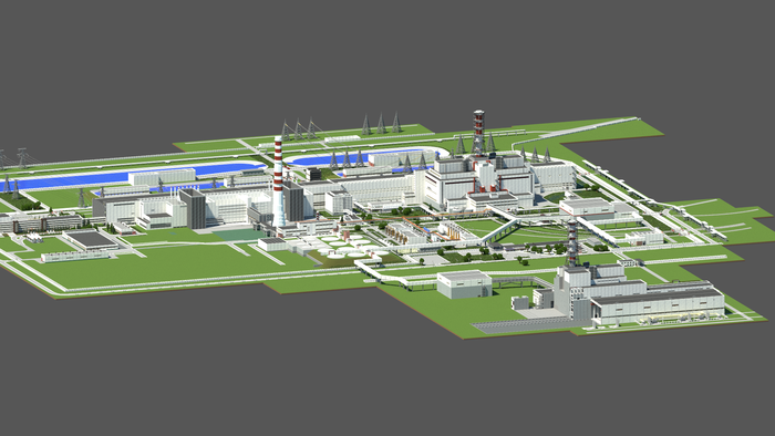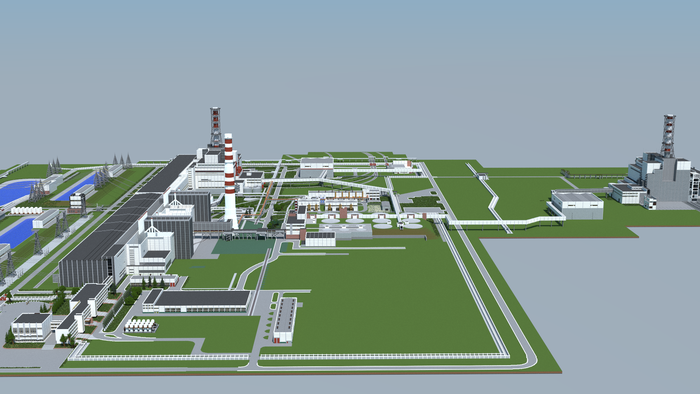 Здесь всё в разы сложнее. Точно так же, как и для 1 и 2 очередей, информации о промышленной площадке довольно мало. Пришлось копать фотографии, чертежи и документы. В итоге, мы получили довольно красивые промышленные пейзажи.