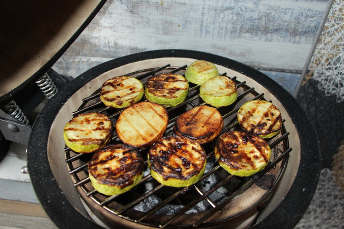 На остатках угля овощи: