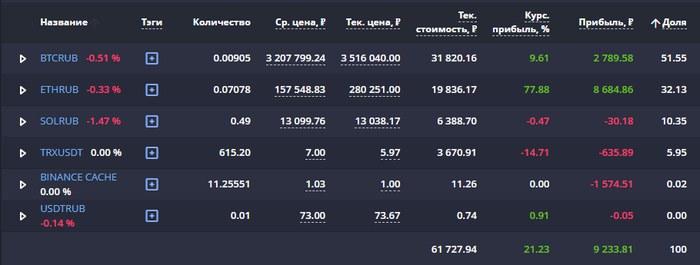 На фоне текущей коррекции портфель неплохо так просел. А значит самое время наращивать долгосрочные позиции. Сегодня, как и в прошлый раз, докупаю BTC и SOL.