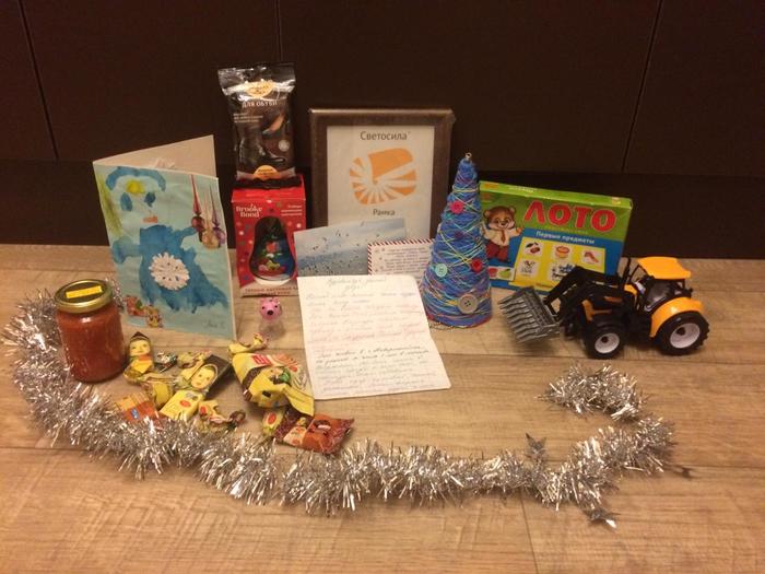 Итак, наша снегурочка из Новороссийска, Галина, передаем Вам и Вашей семье пламенный привет из Москвы, низкий Вам поклон за ту любовь, которую Вы вложили в сбор этого подарка, это непередаваемые ощущения.