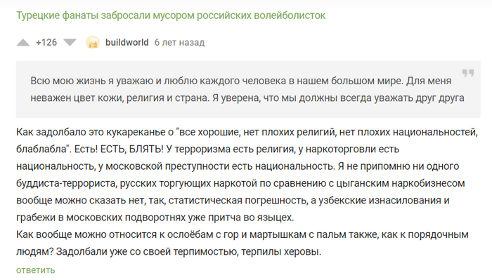 Ну, самолюбие вы мне своей охотой потешили. Сейчас рейтинг почти перестал падать. От души ребят, реально спасибо. Мне было довольно весело. Но теперь мне нужна ваша помощь! Как заметил один из комментаторов, мой оппонент недавно менял никнейм. Так что же под капотом у него там... Ну, как я и ожидала из доступных на тот момент еще высказываний, но ВОТ ЭТО меня сподвигло к публикации данного поста.