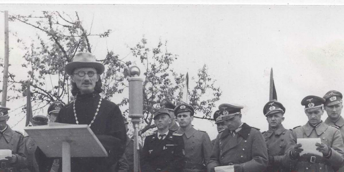 Можно осторожно предположить, что выступающий на фото батюшка и есть протоиерей Дмитрий Булгаков, первоначально служивший при немецкой администрации в Орле, а в августе-сентябре 1943 г. вместе с М. Октаном перебравшийся в Бобруйск.