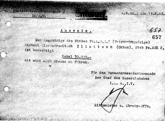 А вот кто такой человек в форме танкиста на заднем плане? И уваж. Шимону Бриману, и мне пришла в голову одна и та же мысль: а не может ли это быть одесский инженер Михаил Илинич, ставший во время войны известным немецким пропагандистом под псевдонимом Октан?