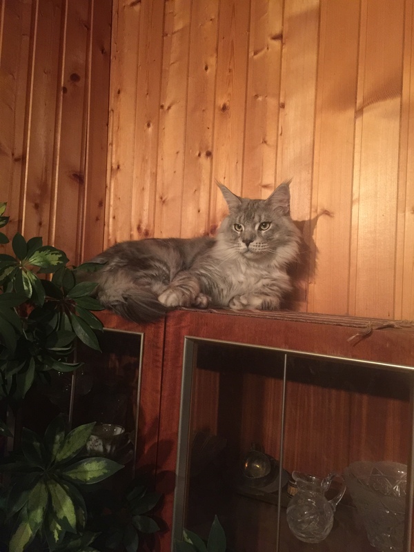 Но не все члены семьи обрадовались его появлению, кошка, раза в три мельче зашугала бедного гостя, не дает ему выйти из комнаты, шипит и всячески проявляет свое недовольство