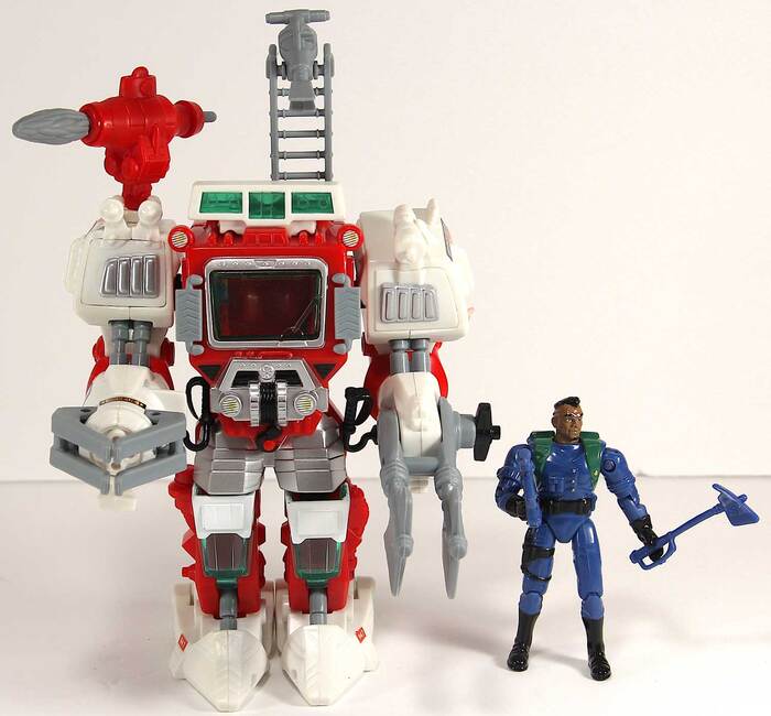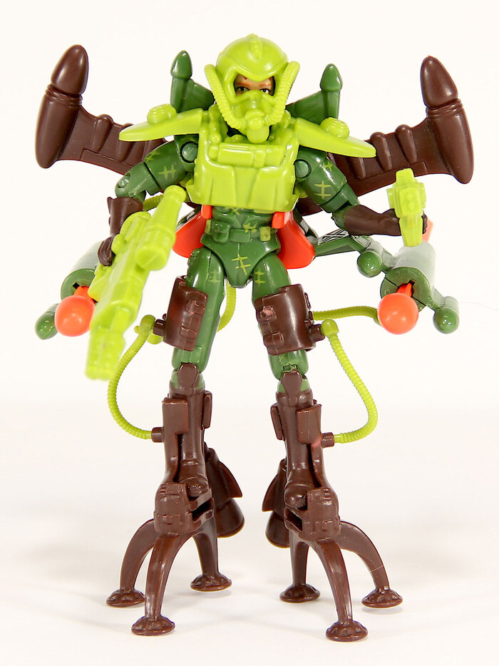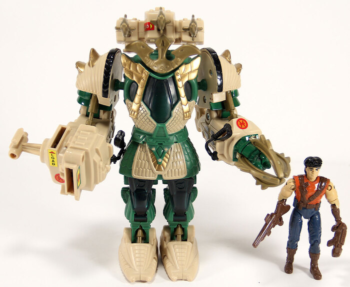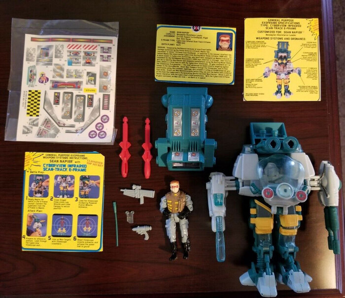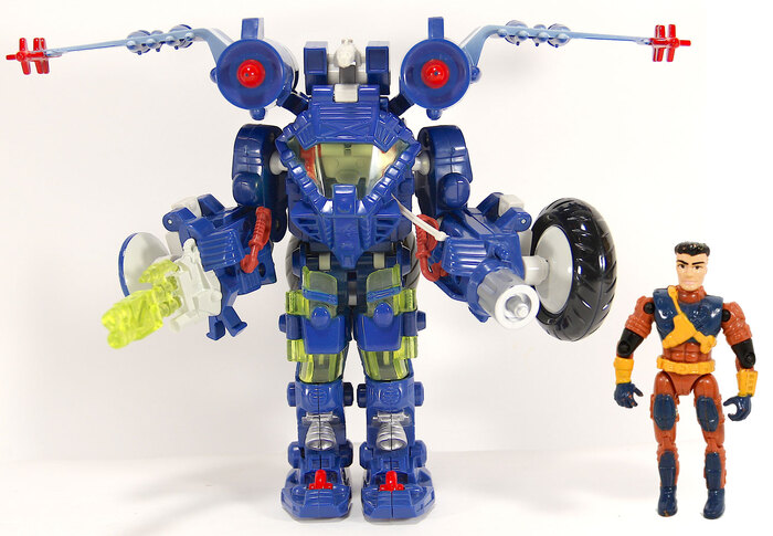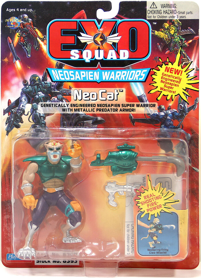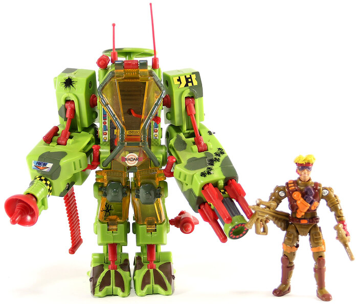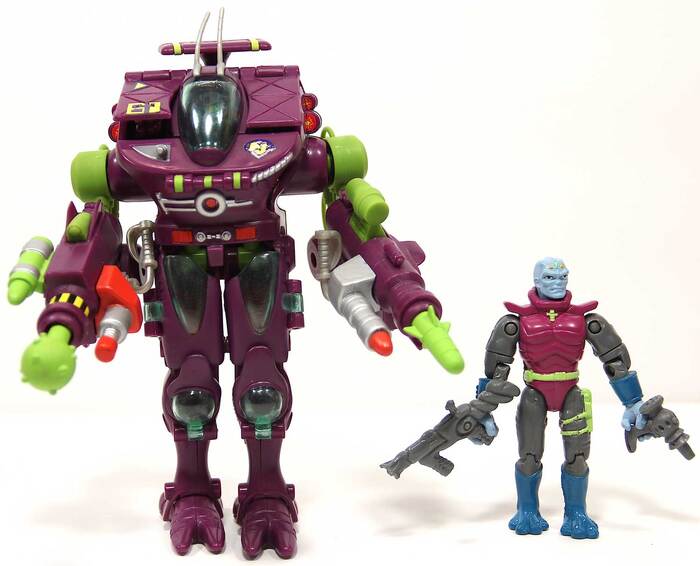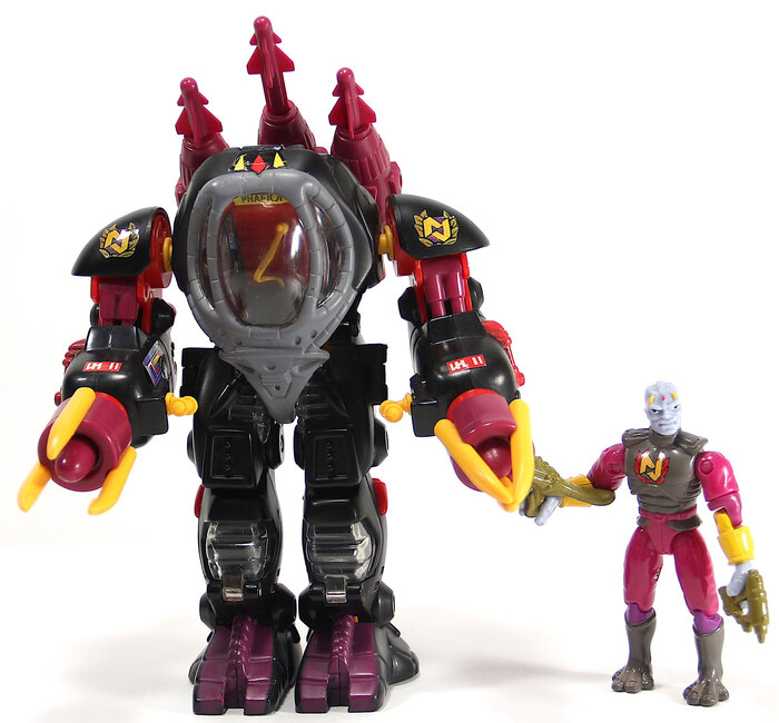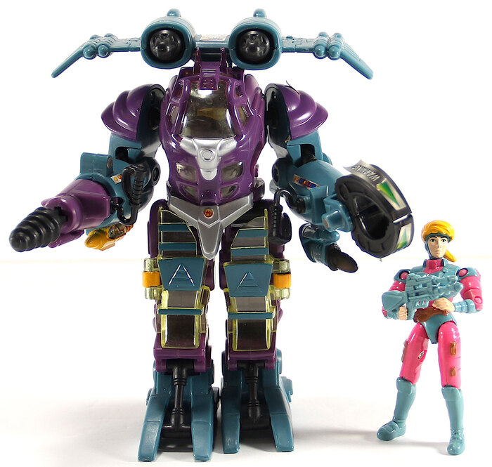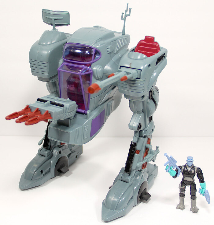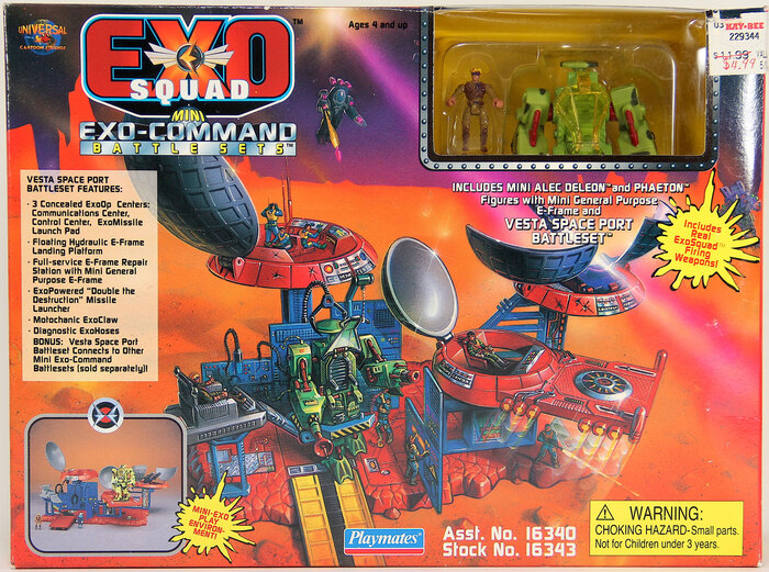 Оказывается, в 1993-м году, Playmates (Playmates Toys Limited - гонконгская игрушечная компания) выпустили 3 волны игрушек, подразделяющихся на две категории мехов (exoframe) - Легкие штурмовики и Мехи общего назначения. Мехи шли в комплекте с фигуркой пилота и были снабжены различными игровыми фишками: выстреливаемыми ракетами, клешнями на пружинах, поворачивающимися крыльями, открывающимися кабинами, подвижными бронированными пластинами. Каждый аппарат снабжался также наклейками, которые можно было наклеивать по усмотрению владельца, и которые показывали степень повреждения мехов во время сражения. Мехи и пилоты представляют собой высоко детализированные фигурки с большим количеством точек артикуляции, даже несмотря на то, что пилоты были не выше 3 дюймов. Более того, были выпущены также Командные центры с маленькими мехами и пилотами, а также космические боевые корабли с еще более мелкими, микромехами.