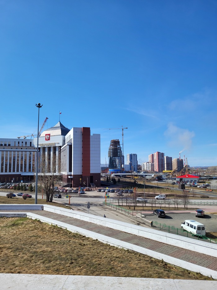 Вид с Пионерского в сторону Советского. Видно здание Восьмого КСОЮ и за ним строящийся небоскреб-гостиница а-ля Москва сити.
