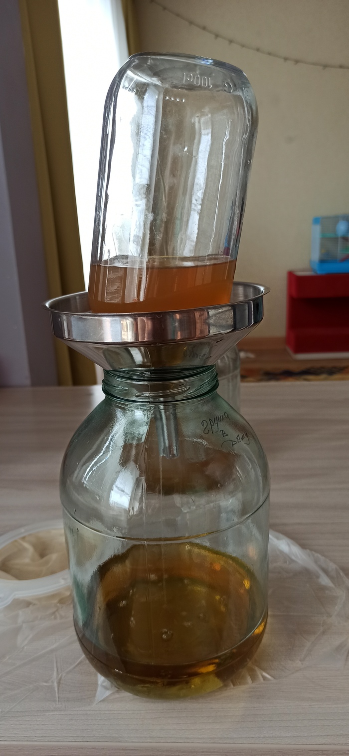 Отлично, ждём день деньской, пока вся муть осядет на дно и сливаем получившуюся брагу так, чтобы не потревожить осадок ЭТО ВАЖНО! Осадок состоит из глины И ЕЩЕ БОЛЕЕ ВАЖНО!!! Это НЕЛЬЗЯ СЛИВАТЬ В КАНАЛИЗАЦИЮ! Она забьётся. Поэтому осадок собираем в пакет/бутылку и несём на свалку.