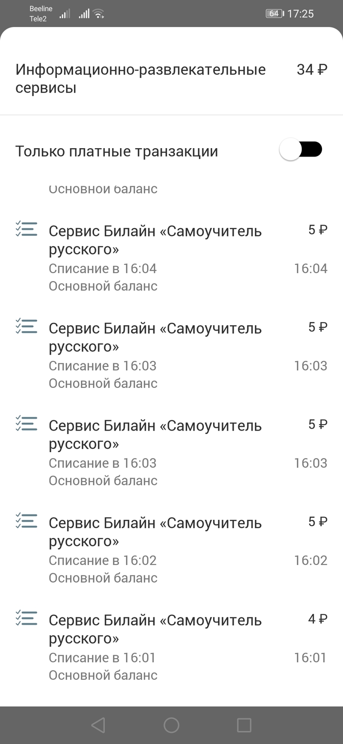 У меня оператор Билайн, пакет услуг, как и у многих (телевидение, интернет, сотовая связь). Т.е. я закинул денег и пользуюсь месяц этими услугами, не парясь. Но есть дополнительные траты - я звоню родственникам в другую страну, и соответственно, за эти разговоры плачу отдельно. И тут сегодня я, закинув 200 рублей, обнаружил на счету 166 рублей, не понял, куда делись 34 рубля?
