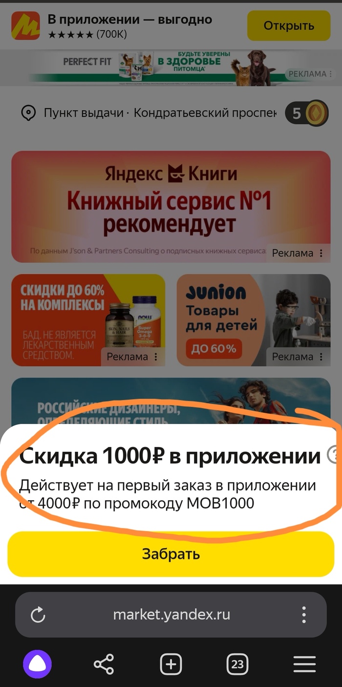 Спросил сразу про второй промокод, который за первый заказ в приложении, и, конечно же, он тоже не действителен (к слову, до сих пор вылазит).