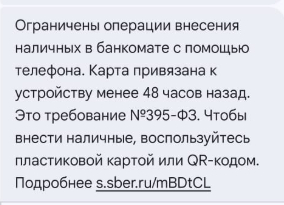 Привязал карту к мир-пэй, хочу внести немного денег через банкомат - облом.