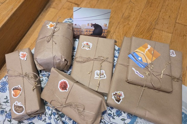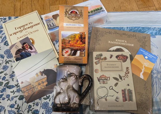 И осень 2025 для меня - это котики, книга, чай и уютный дом с сезонным меню. Почему? Потому что моя волшебница всё-всё угадала и смогла меня очаровать своим выбором. В присланной открытке упоминается, что у нас с ней много общего и это действительно так. Посылка настолько "моя". В каждой детали - мои предпочтения, мои хобби, мои любимые детали. И котики ^_^. К каждому упакованному свертку была небольшая открытка. Как будто ведём диалог на расстоянии.