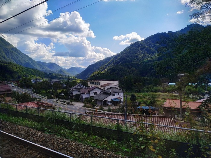 Итак, станция называется Нагисо, она расположена на древней тропе Накасендо — это такая тропа, по которой еще Мацу Басё ходил вместе с тысячами торговцев периода Эдо из Киото в Токио. Живописнейшее место с аутентичными деревнями Цумаго и Магоме, в которых воссоздан дух той эпохи.