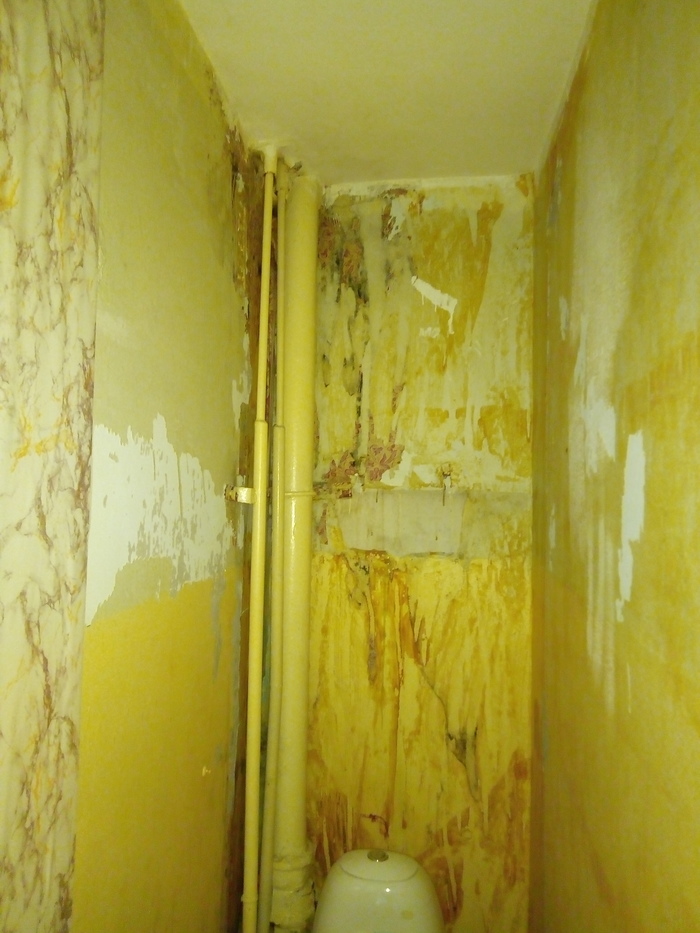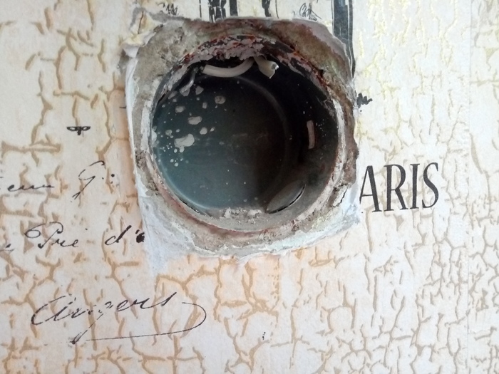 Когда в ванной комнате сбивали плитку ломом, он случайно соскочил в щель между стенками, случился конфуз.