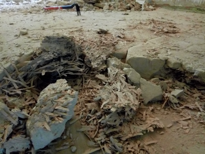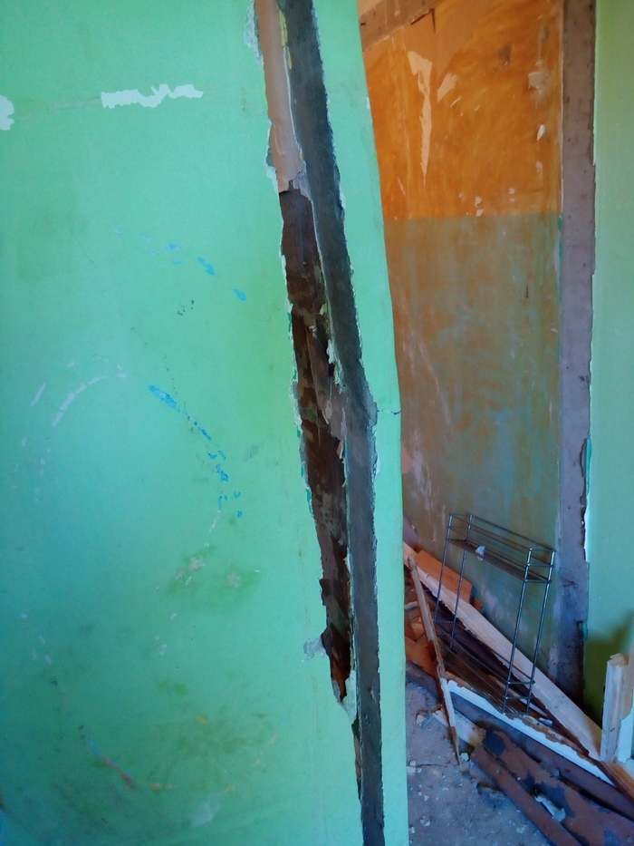 Маленькая стенка надломилась, осмотрели её и выяснили, что она держалась только на одной арматурной петельке из перпендикулярной стенки почти под потолком.