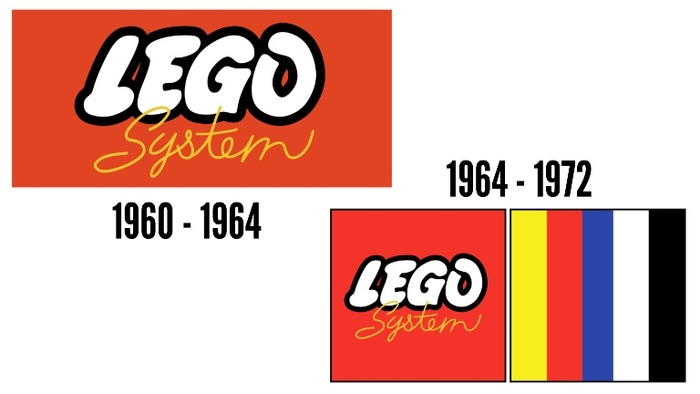 В то время на логотипах появляется слово «SYSTEM». И это отнюдь не просто модное слово, а настоящий манифест: LEGO продаёт не набор, а принцип. Если угодно - принцип взаимосвязанности. В 60-х фон становится прямоугольным, появляется многоцветье (красный, белый, чёрный, жёлтый), затем квадрат с «LEGO System» и вертикальными цветными полосами. Этот полосатик буквально показывал идею: разнообразие деталей, но один порядок сборки мира.