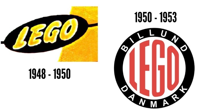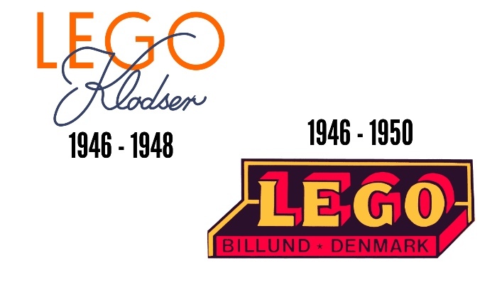 С началом выпуска первых деревянных игрушек компания впервые меняет свой логотип. Он становится похож на своеобразную подпись мастера по дереву. Тонкий курсив, две параллельные линии, между ними название фабрики «Fabriken Billund», ниже — текст о том, что это фабрика деревянных изделий и игрушек. Скромно, по-ремесленному, с акцентом на происхождение. Никакой магии, только география и дерево.