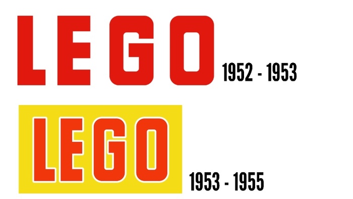 Дальше мир подсаживается на пластик, а LEGO на идею системы. В 1947-м компания покупает литьевую машину, а к концу 40-х начинает экспериментировать с лого под новые кирпичики и новую эпоху. И вот тут наступает настоящий “дизайн-джаз”: конец 40-х и начало 50-х — время, когда логотипы у LEGO меняются почти ежегодно. Круглые печати, овалы, смелые красные надписи, жёлтые подложки — огромное поле для экспериментов в поиске смыслов и обретении себя.