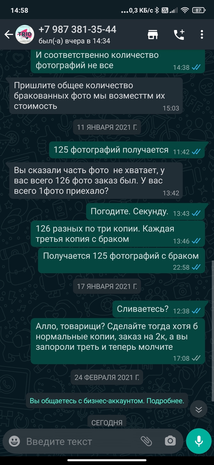 Вот примеры фотографий. В общем 125 бракованных фотографий. Попытались как то урегулировать данную ситуацию, но разбились о непонимание и игнор.