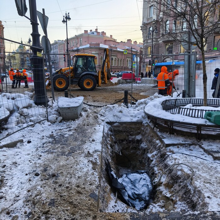 Около метро Петроградская Водоканал ведёт работы и раскопал несколько ям: