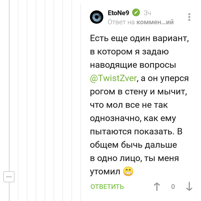 И товарищ остался при своём мнении. И вот главное, что я из этого вынес - донести, пояснить и качественно аргументировать вещь, которая для меня естественна, простому обывателю я не смог.