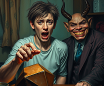 Вонь мгновенно заполнила квартиру. Иван в ужасе отбросил шарик, который, покатившись по полу, остановился, и на нём зажглась цифра 100. Из ниоткуда возник чёрт, громко смеясь. Чёрт был странного вида — что-то среднее между карикатурным дьяволом и продавцом на рынке.