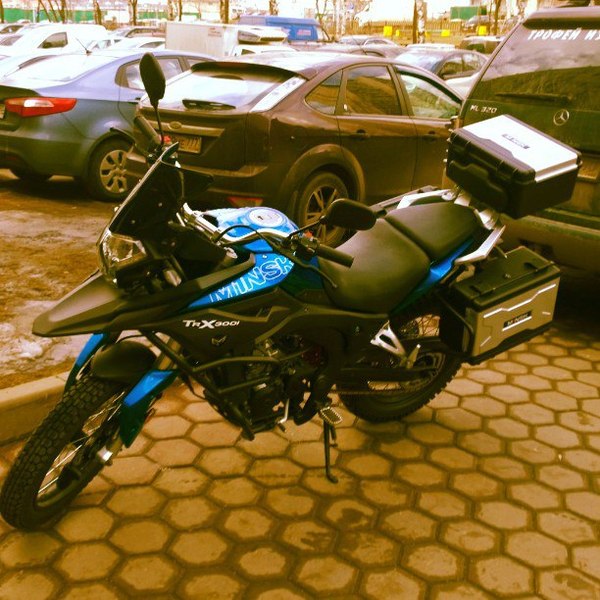 Знакомые советовали разное, начиная от ушатанных в хлам отечественных мотоциклов и японцев (Ну а чё, там же подкрутить, докупить вложить столько же и всё будет зашибись) и заканчивая относительно новыми или даже новыми мелкокубатурными представителями японского моторынка. При этом все как один отоваривали от китайских представителей. Достаточно много техники было просмотрено и наконец мой выбор пал на то, от чего меня отговаривали- китайский мотоцикл под белорусской маркой Минск- M1NSK TRX 300i, по факту он же Zongshen zs250gy-3, он же CSC Motorcycles RX3. Ибо он попадал подо все мои критерии, а именно обладал небольшой кубатурой для первых двух сезонов, был достаточно высок и удобен по посадке, поэтому со своими почти 2 метрами роста я не чувствовал себя на нём кузнечиком, по умолчанию на нём стояли и дуги (которые уже успели в том сезоне спасти мне ногу), и кофры, так же по заверениям производителя он обладал достаточной проходимостью.