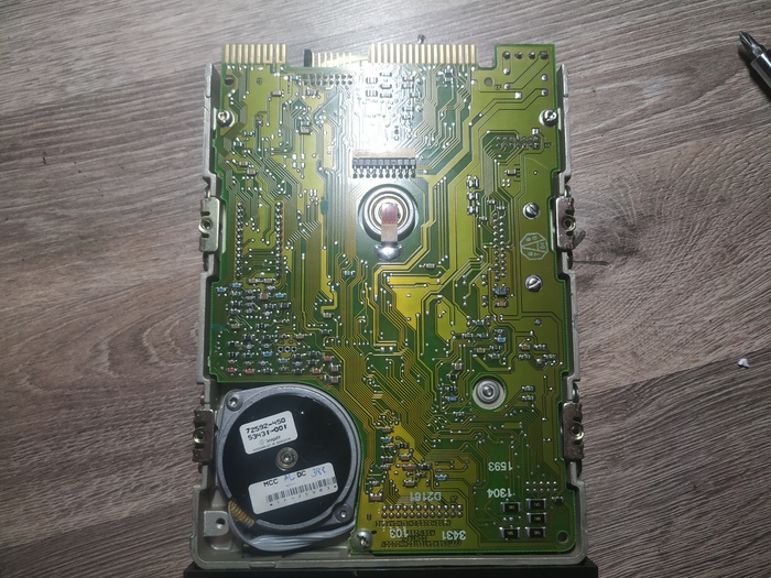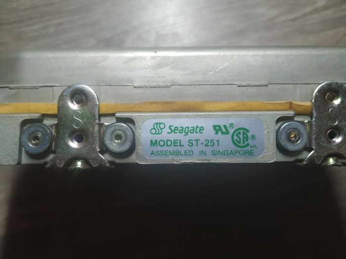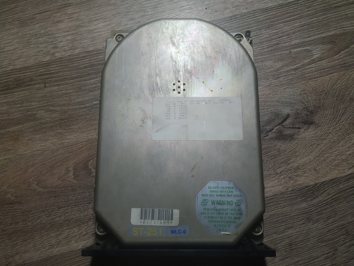 Не побоюсь этого слова, ЖЁСТКИЙ диск. Жёстче, наверное, только первый от IBM))) Пятидюймового размера, весом с кирпич. Seagate ST-251. Интерфейс - MFM. Жив. НА верхней крышке - табличка с ЗАВОДСКИМИ BAD-секторами.