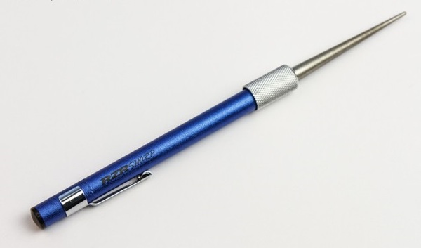следует отдать на заточку тем, кто это делать умеет. Если же вы решили самостоятельно заточить такой нож, то помните, что он точится только с одной стороны, при этом плоский брусок, как для плейна, для серрейтора не подойдет. Здесь понадобится треугольный либо же конусообразный брусок, например, вот такой: