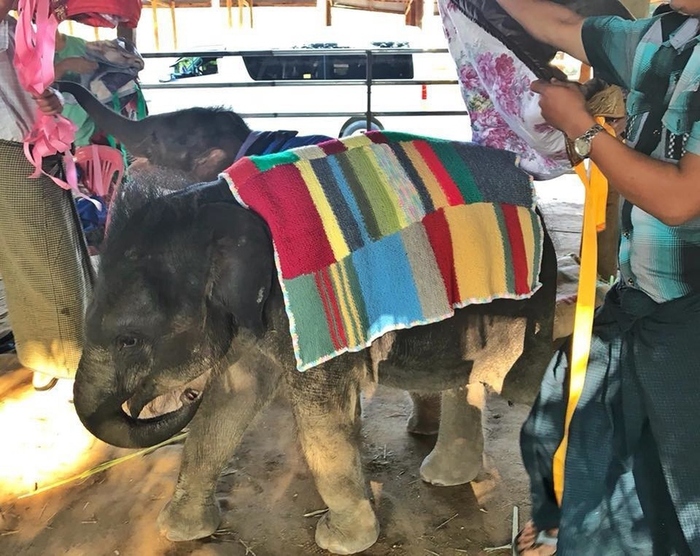 В Мьянме на слонят надели одеяла, чтобы спасти от внезапных холодов