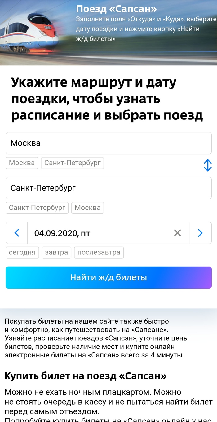 Если вы в первый раз собираетесь приобрести билеты на "Сапсан", не будьте мной, покупайте их на официальном сайте РЖД.