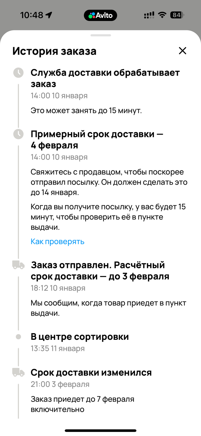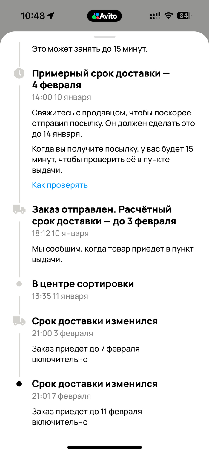 При этом статус заказа так и не меняется, стоит статус «Едет к вам» и приедет 11 февраля. Не понятно, какого только года 😄