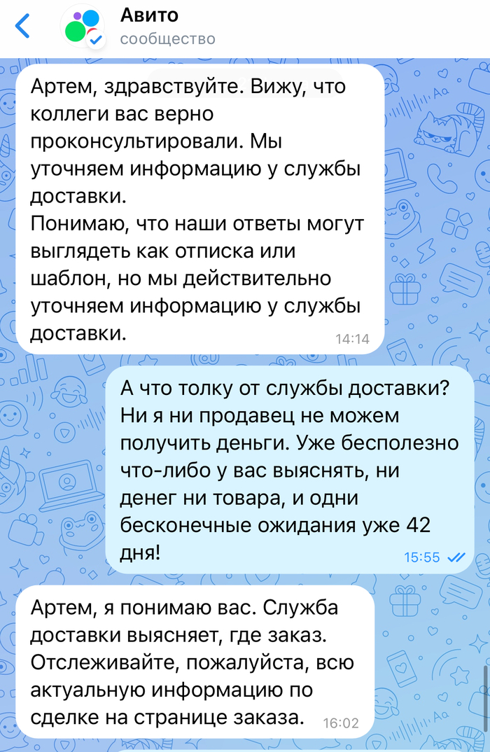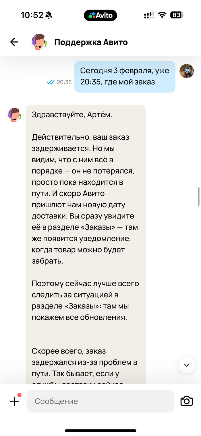 @Avito.help Ау, что там с заказом?)