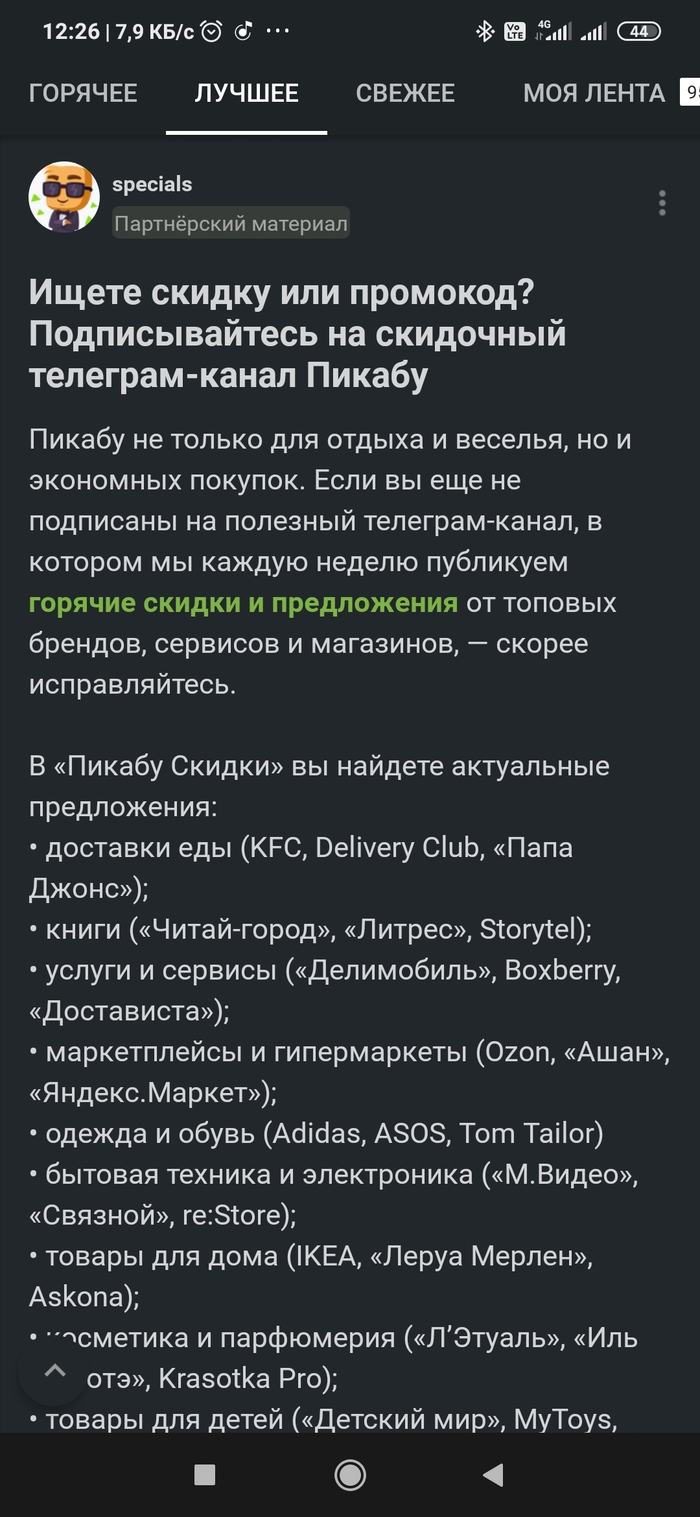 Попалась реклама о скидках не от кого-нибудь, а от самого Пикабу.