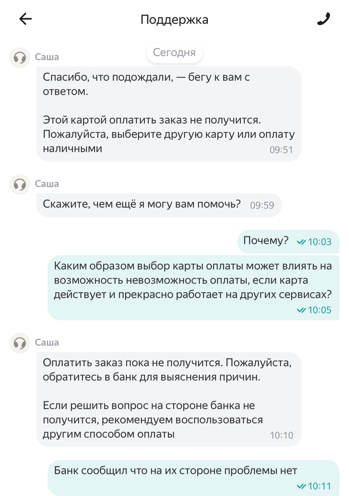 А позиция поддержки Деливери — не выпендривайся и просто плати другой картой.