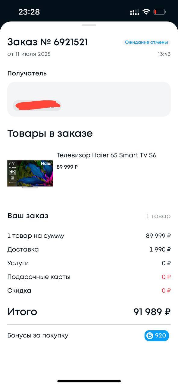 Когда мне всё-таки удалось связаться с менеджером, ее ответ был просто возмутительным. Она ехидно заявила, что «покупать нужно у них, иначе возврат средств будет очень долгим». При этом оплата была произведена через Систему Быстрых Платежей (СБП), а по правилам возвраты по СБП должны происходить практически мгновенно. Я иногда делаю отмены заказов по разным причинам в разных магазинах и МП и никогда не было проблем с простыми отменами (не путайте с возвратами).