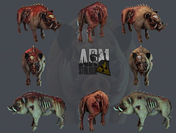 И напоследок у нас новая модель чернобыльского кабана. Настоящий матерый зверь, повидавший все невзгоды в ЧЗО и готовый в любой момент разорвать игрока в клочья, настоящая живучая тварь. Крайне опасный мутант и водится исключительно в центре Зоны, говорят, что такие ужасные монстры получаются из обычных чернобыльских кабанов, которые по той или иной причине добрели до центра, кто или что с ними такое сделал, возможно вы скоро узнаете.