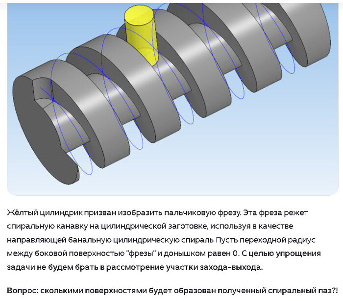 Сколькими поверхностями будет образован полученный спиральный паз при описанных условиях?