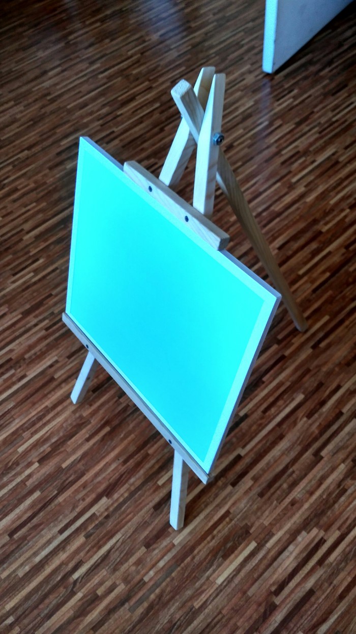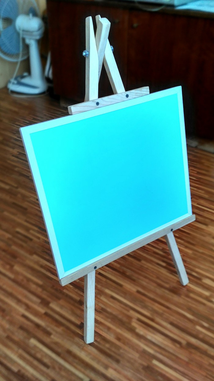В итоге, мысленно представив ещё и путь посылки через блокпосты нашей доблестной почты, пришёл к мысли попробовать смастерить мольберт самому. Возможность осуществить задуманное была очевидна, поскольку работаю в отделке помещений и ассортимент материалов был достаточным. Спустя час с небольшим изделие было готово.