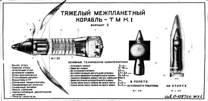 Тут имеется ввиду, именно создание настоящего тяжелого межпланетного космического корабля. Представляете грандиозность и масштаб замысла? Так вот, проект советского тяжёлого межпланетного космического корабля разрабатывался в Советском Союзе еще в начале 1960-х годов. Корабль, как известно, предназначался не только для масштабных космических экспедиций советских космонавтов на ближайшие для нас планеты (Марс и и Венера, но и для осуществления возможной высадки на их поверхность. Даже была запланирована дата запуска корабля: 8 июня 1971 года.